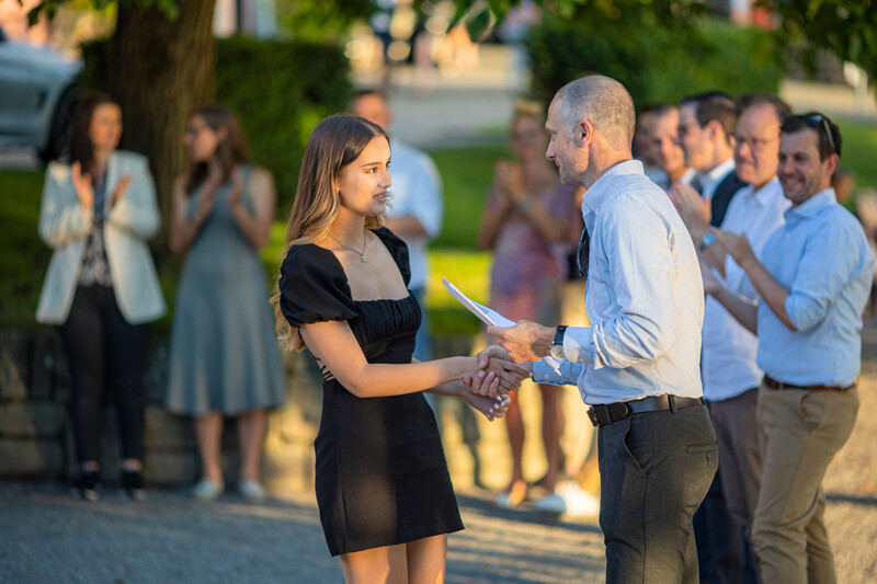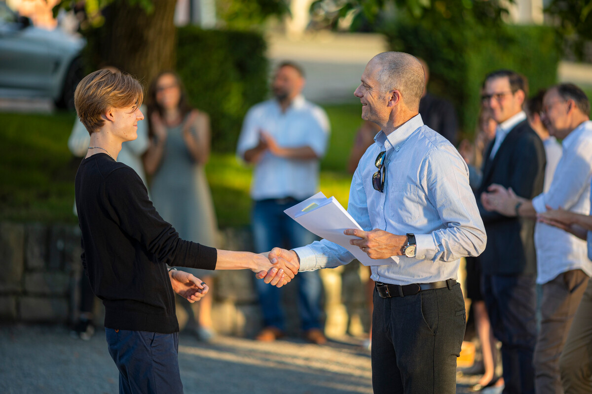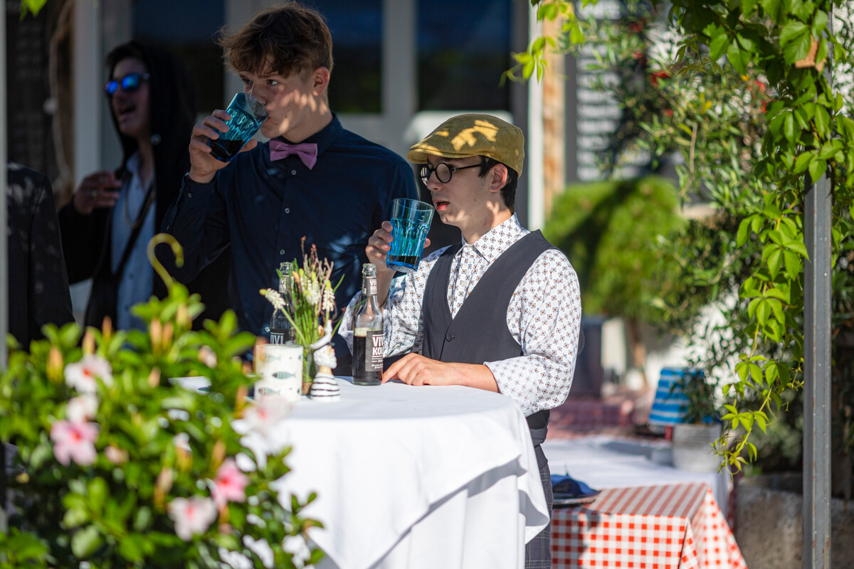 Das letzte gemeinsame Nachtessen genossen die elegant gekleideten Diplomandinnen und Diplomanden im Restaurant Schiff. Der selbstbewusste Blick in die Zukunft beweist, dass die Kollegianer*innen nun bereit sind für ihre nächsten Herausforderungen.