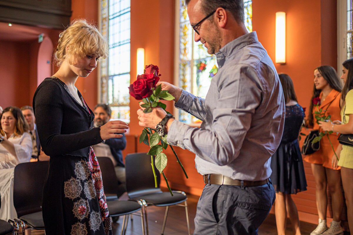 Der magische Moment, auf den die Schüler*innen drei Jahre lang hingearbeitet haben. Endlich dürfen sie das Diplom in ihren Händen halten, und der Applaus ist der verdiente Lohn für ihren Fleiss.