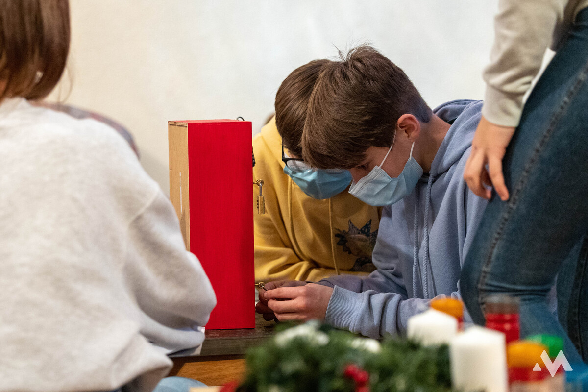 Mehrere Klassen besuchten in der 3. Adventwoche einen Rätselraum zum Thema Advent. Zusammen probierten sie die Krippe zum Leuchten zu bringen. Ganz nach dem Motto: "Advent, Advent, ein Lichtlein brennt".