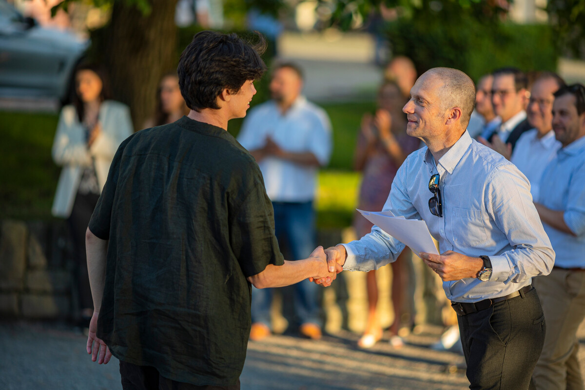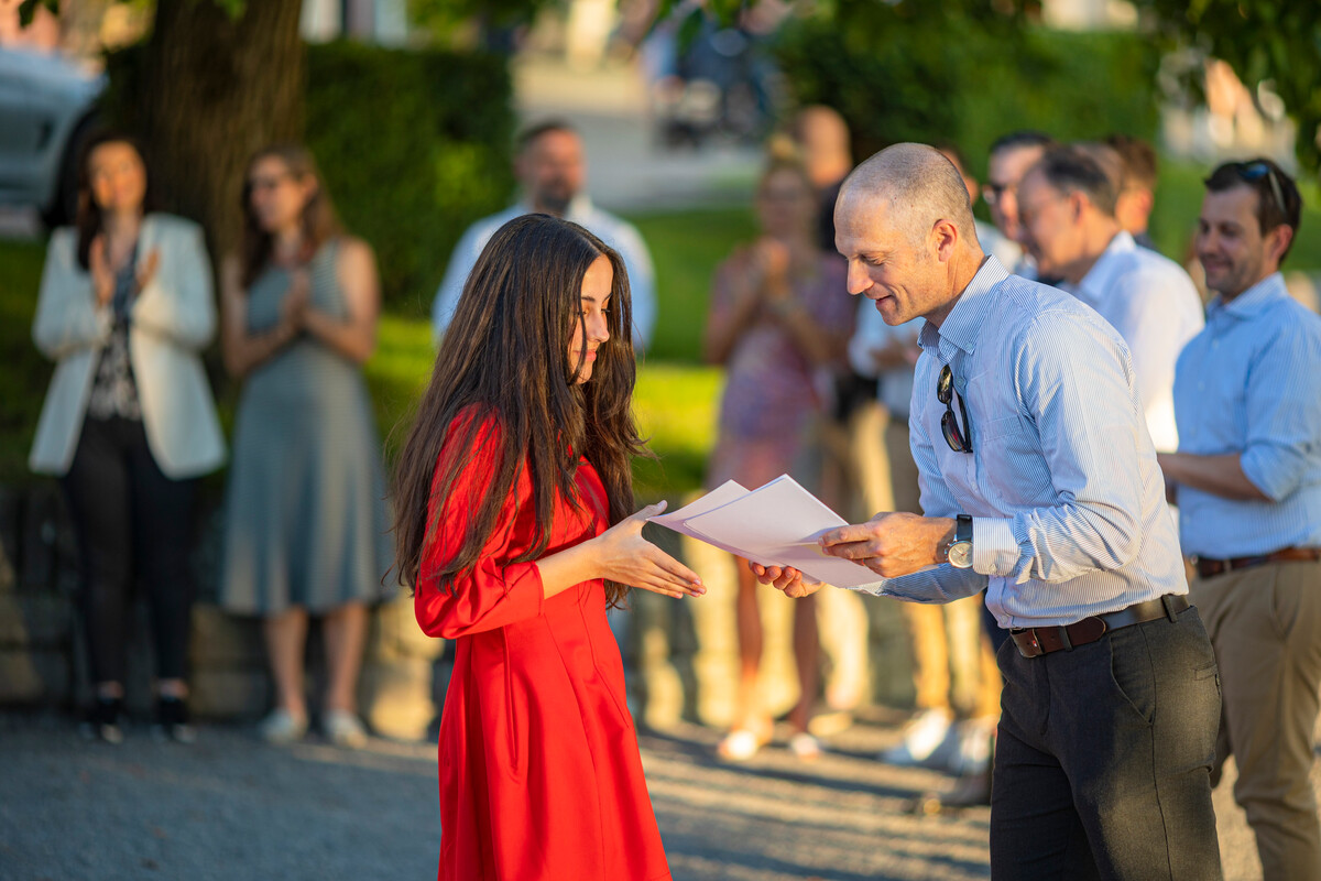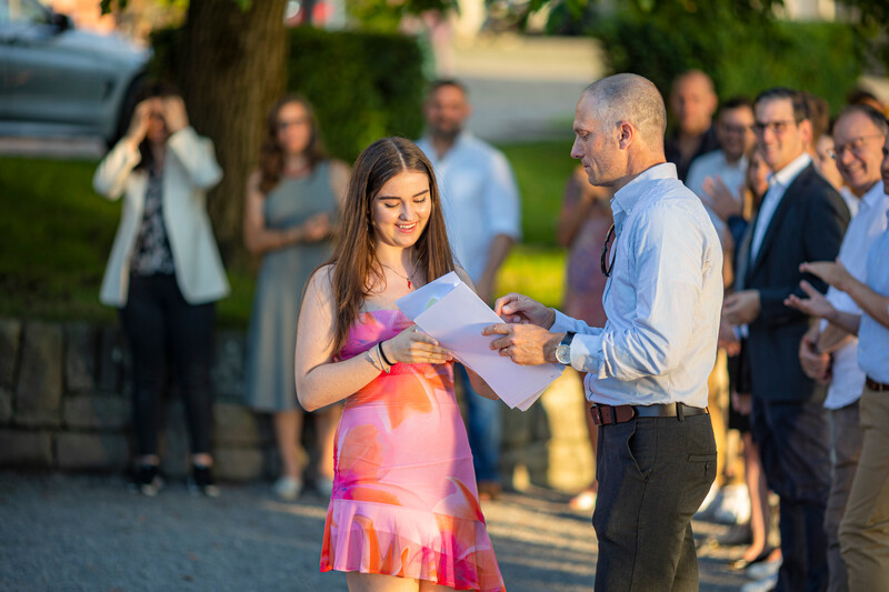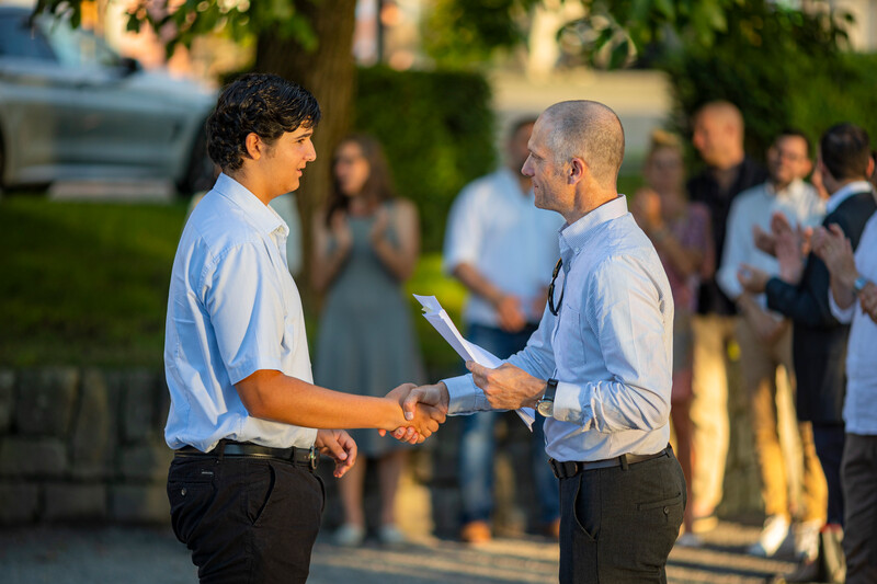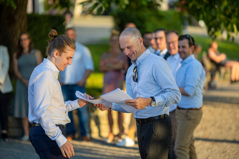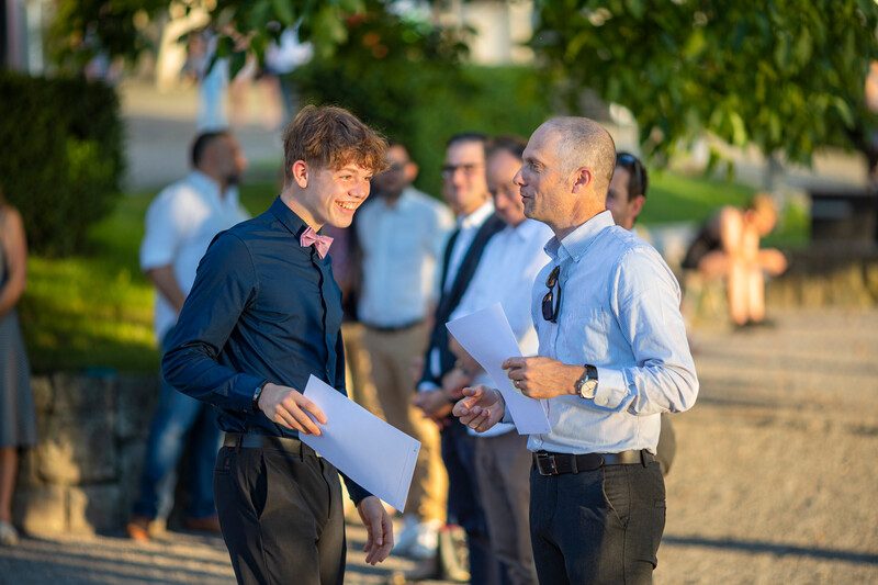 Das letzte gemeinsame Nachtessen genossen die elegant gekleideten Diplomandinnen und Diplomanden im Restaurant Schiff. Der selbstbewusste Blick in die Zukunft beweist, dass die Kollegianer*innen nun bereit sind für ihre nächsten Herausforderungen.